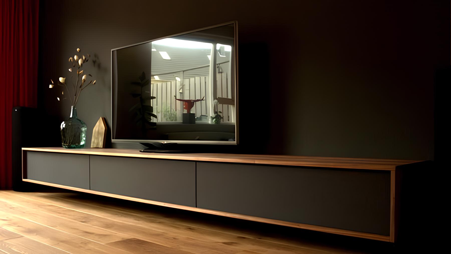 Тумба выполнена из ЛДСП и имеет нишу, полки и выдвижной ящик.