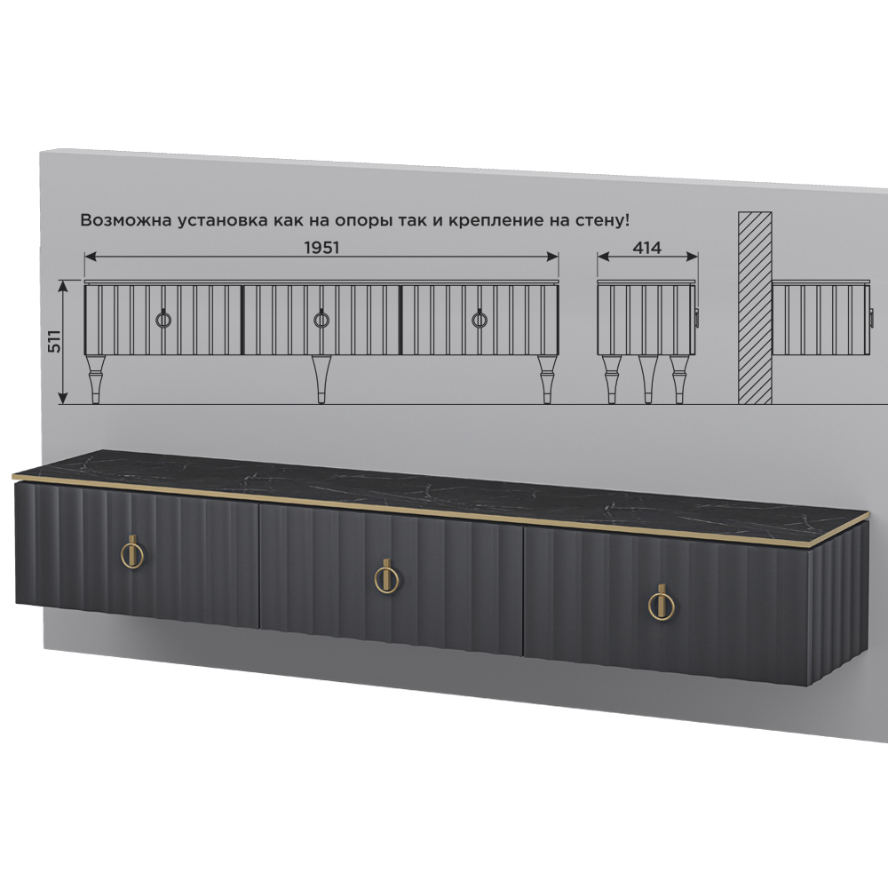 Размер (ШхВхГ): 195х51х40 см. Материал: МДФ покрытый плёнкой, ЛДСП.