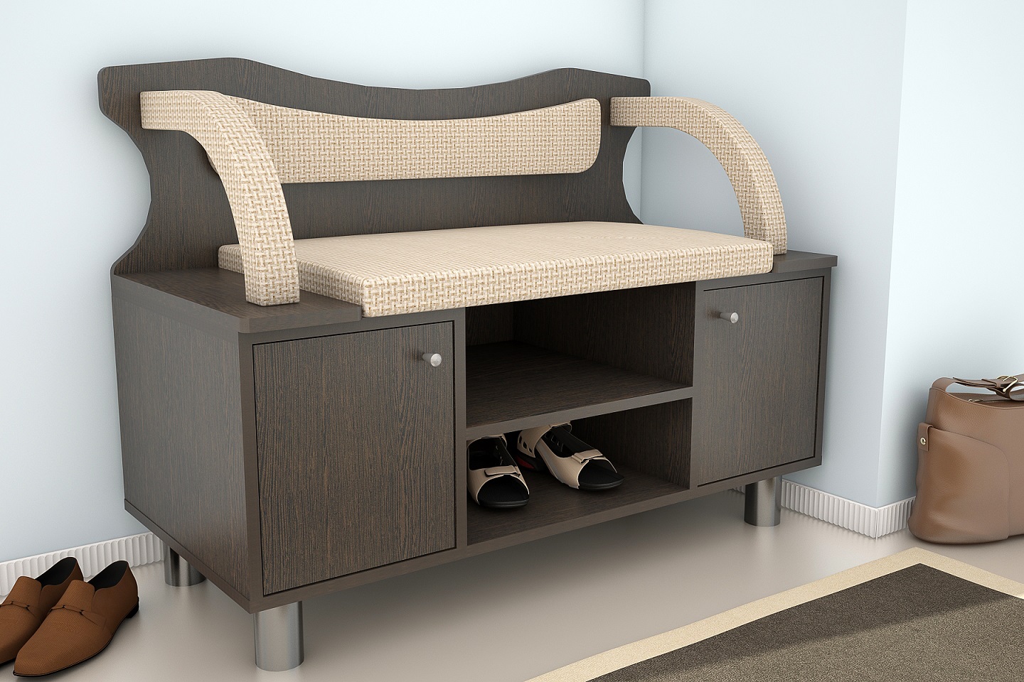 Тумба для хранения обуви с двумя закрытыми и тремя открытыми отделениями.