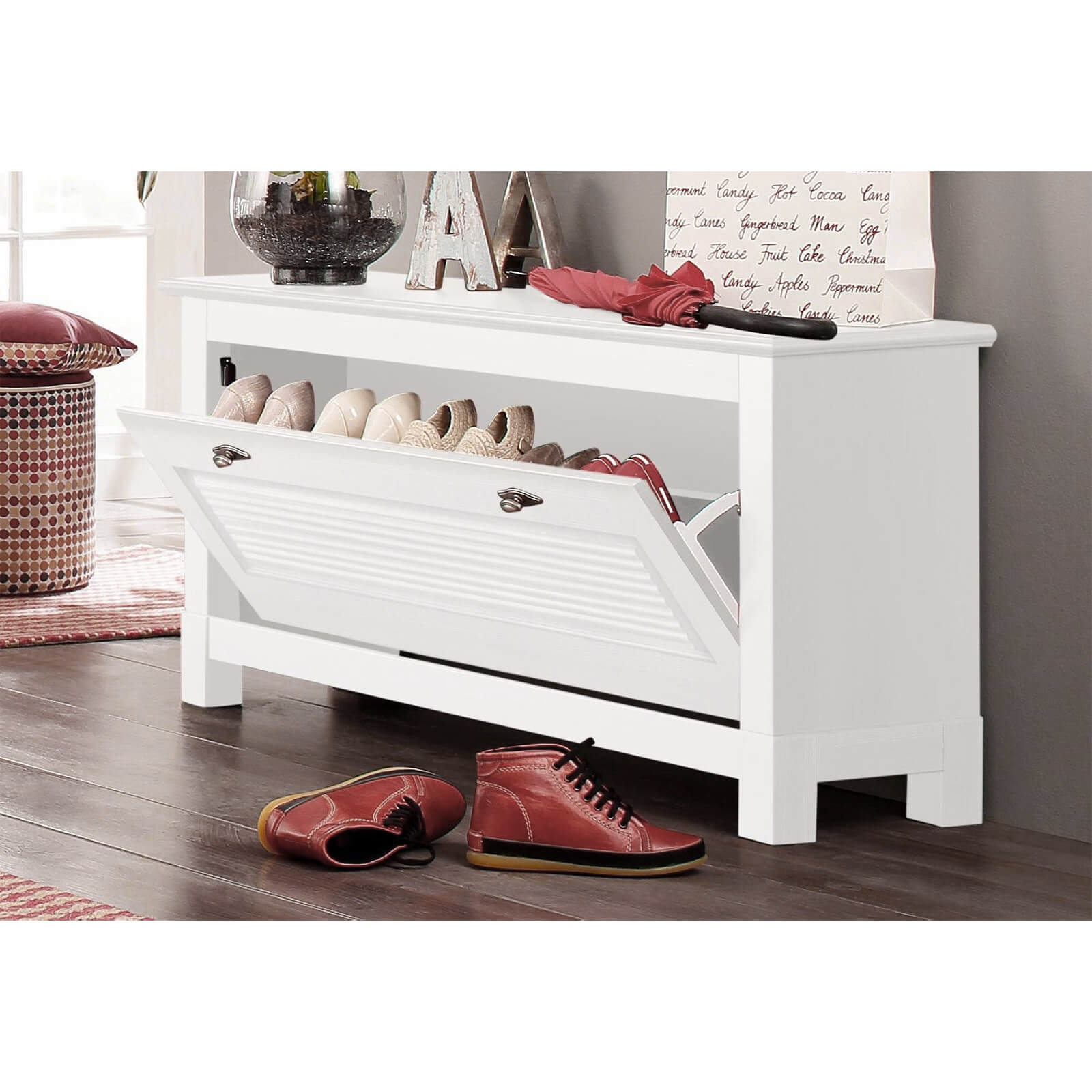 Тумба под обувь из массива «Рауна 01» белый воск