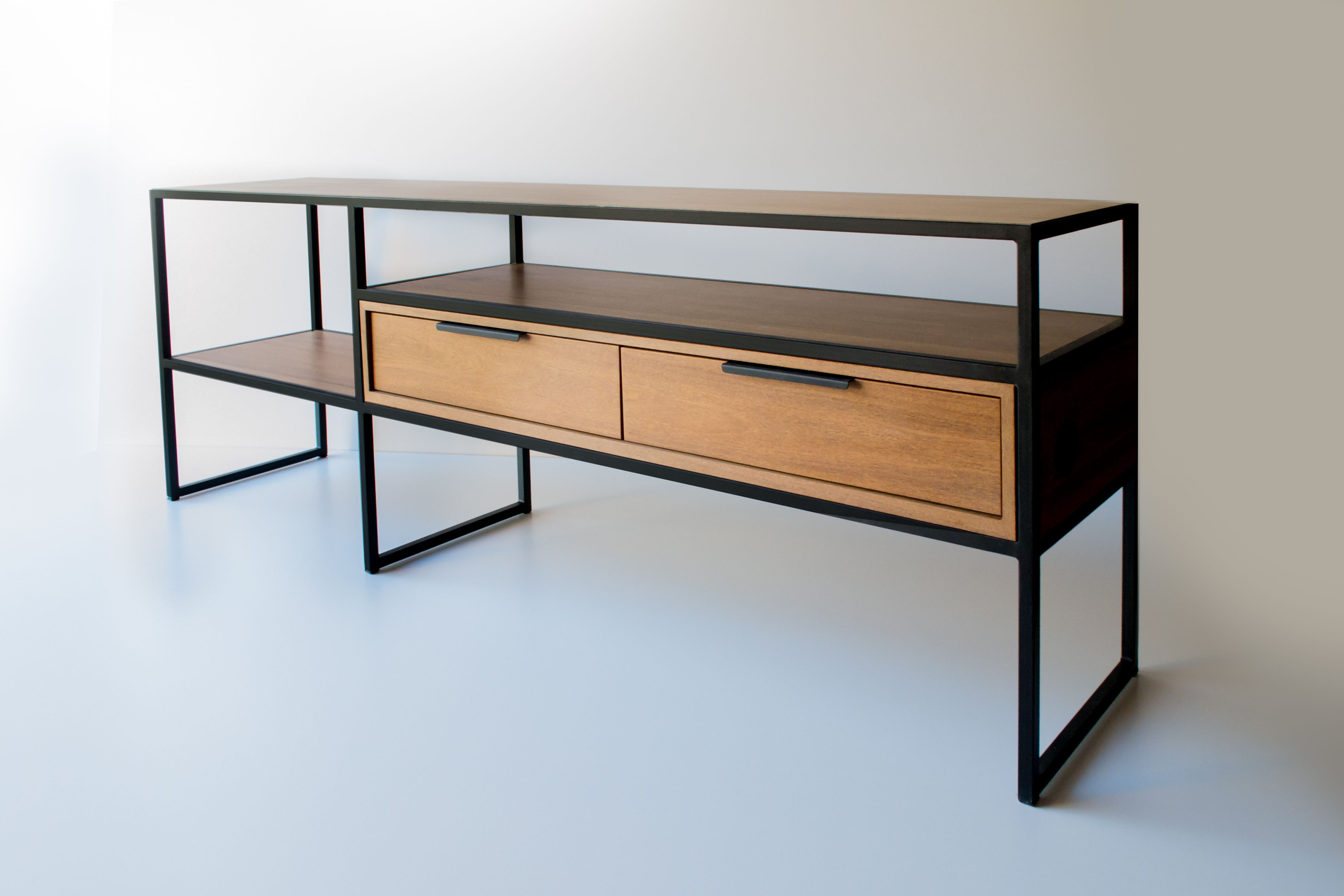 Компактная тумба для телевизора с утонченным дизайном. Две открытые полки дополнены двумя просторными шуфлядками. Простой и стильный вариант для размещения в гостиной.