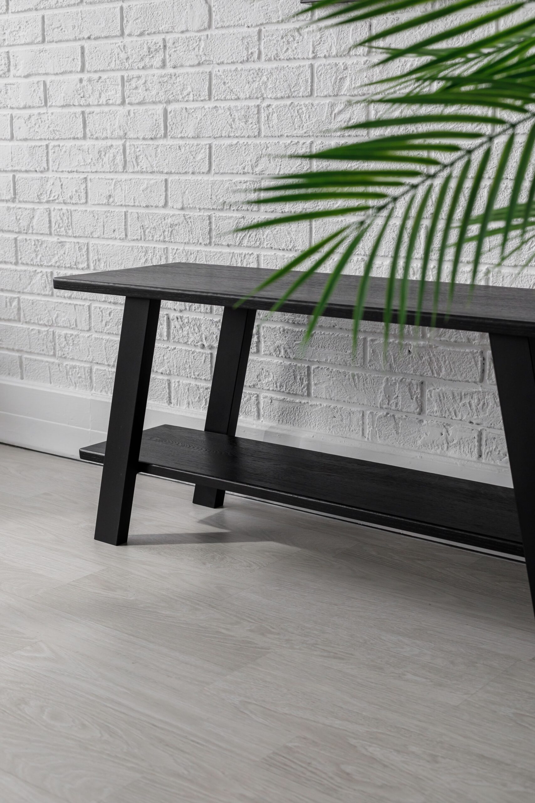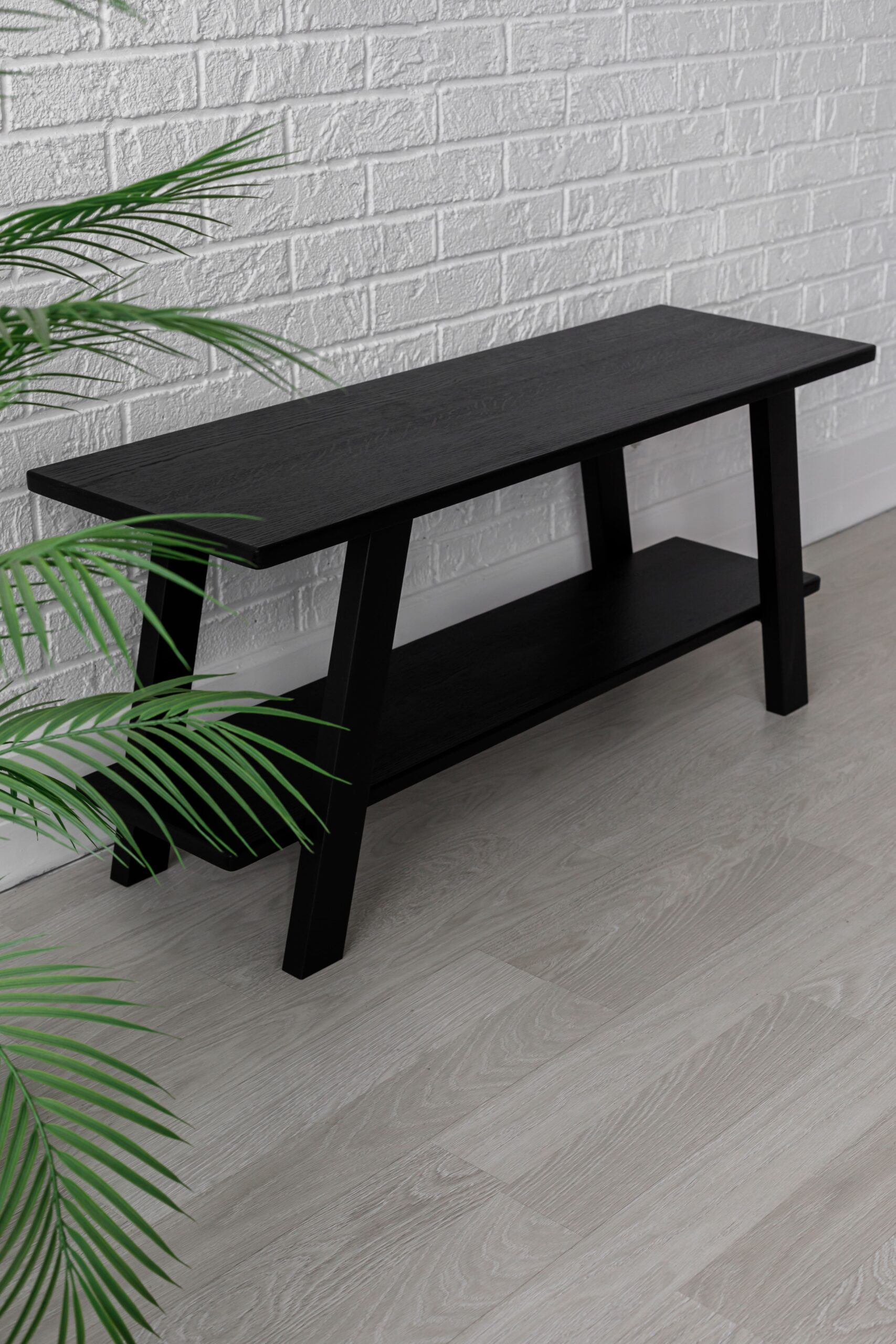 код 146709Тумба, консоль под телевизор. Изготовлена из цельноламельного массива дуба и стали в порошковой покраской.