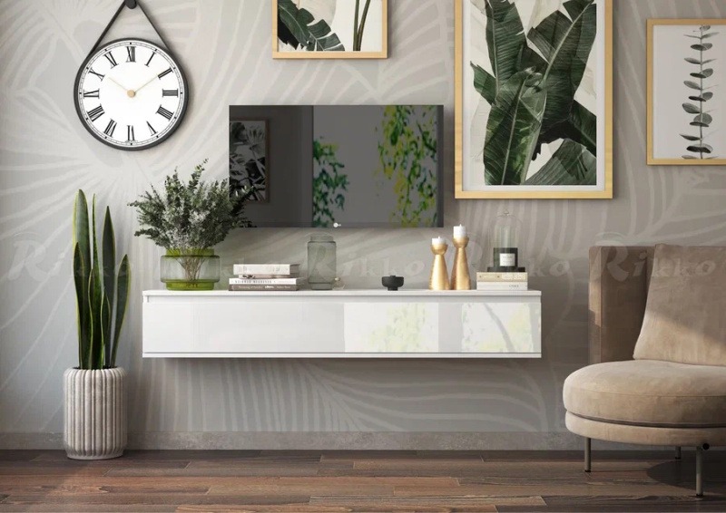 Тумба под ТВ «Альба-3» белый/белый глянец