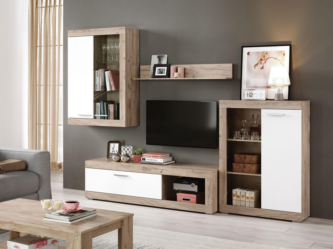 Тумба под ТВ «Детройт» дуб серый/белый бриллиант