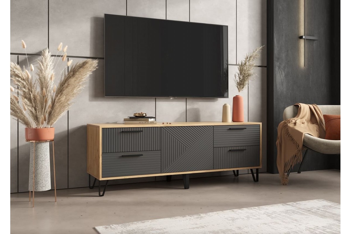 Тумба под ТВ «Флэш» (1500) (Браш Графит - Дуб Крафт)