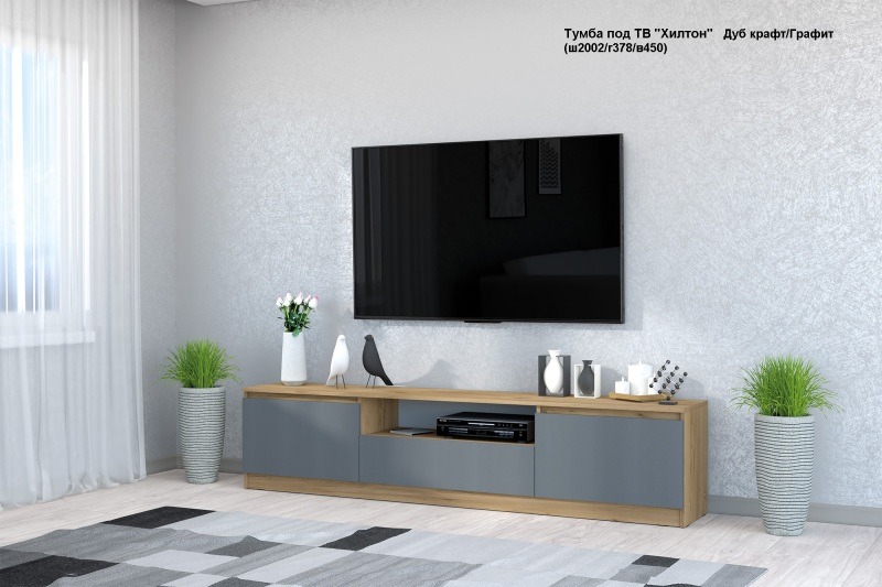 Тумба под ТВ «Хилтон» дуб крафт золотой/графит