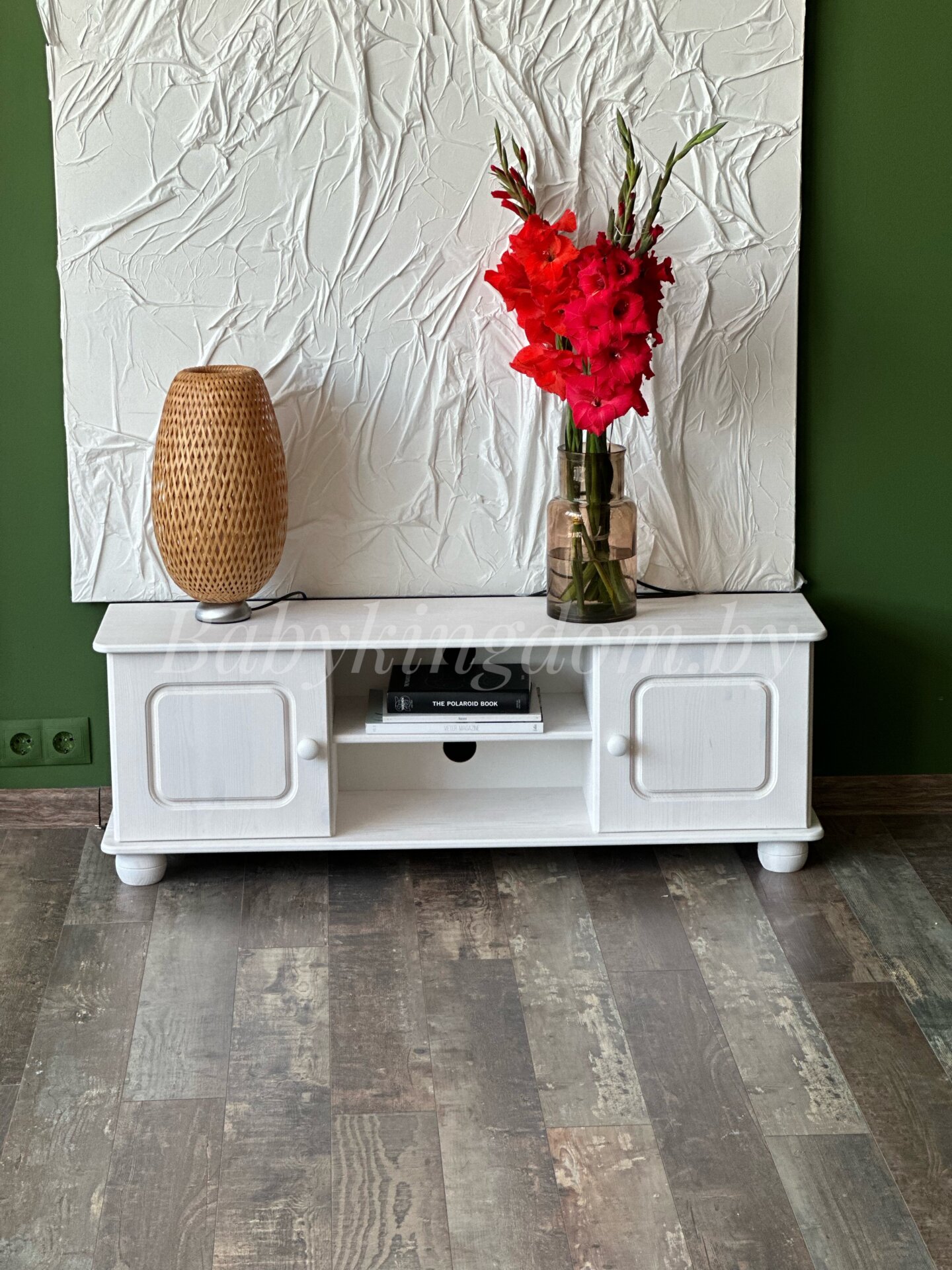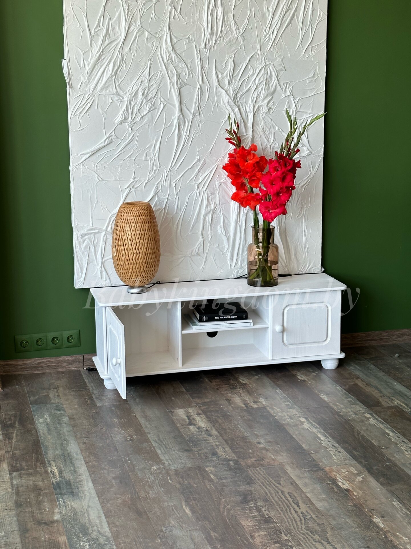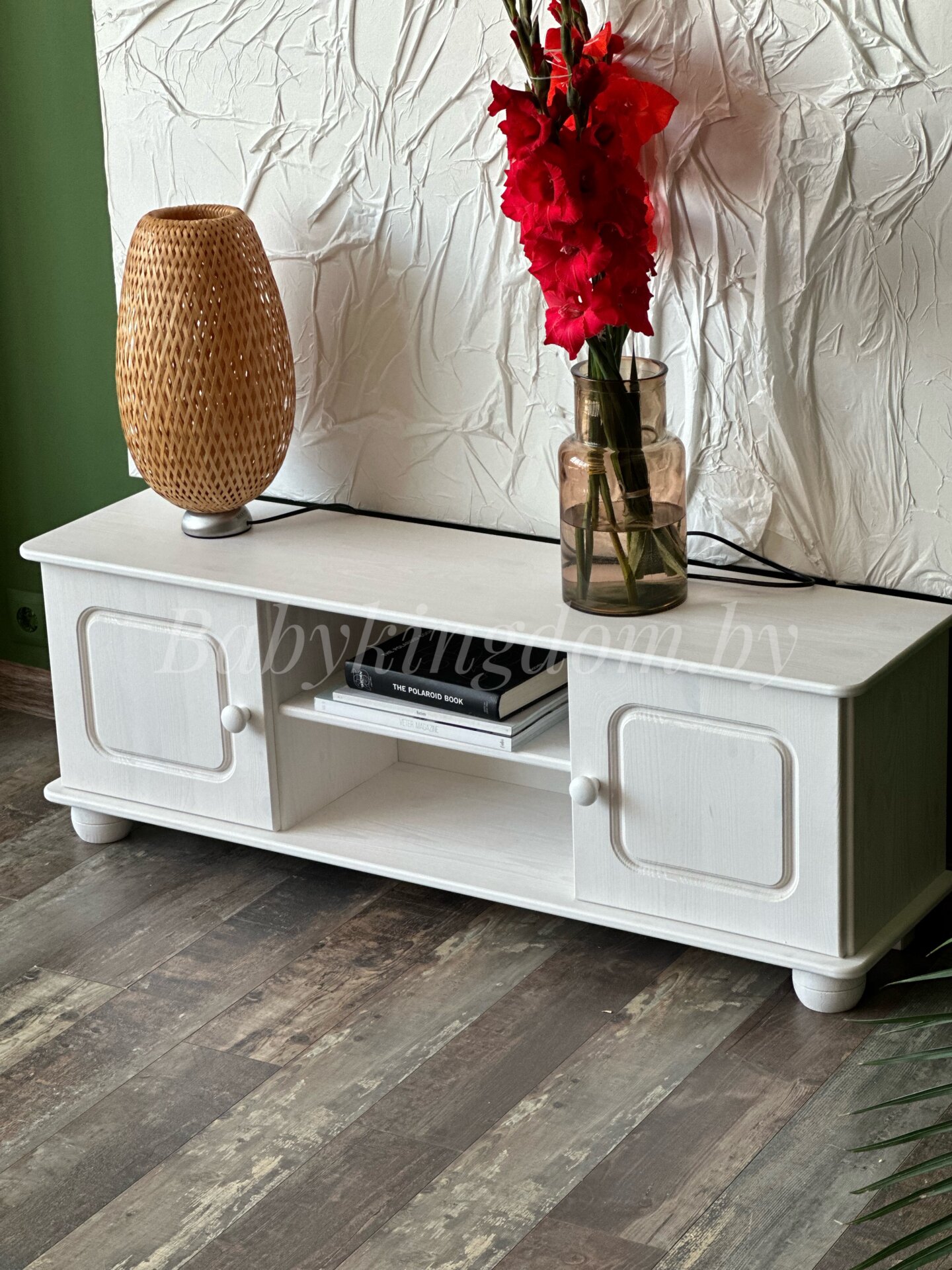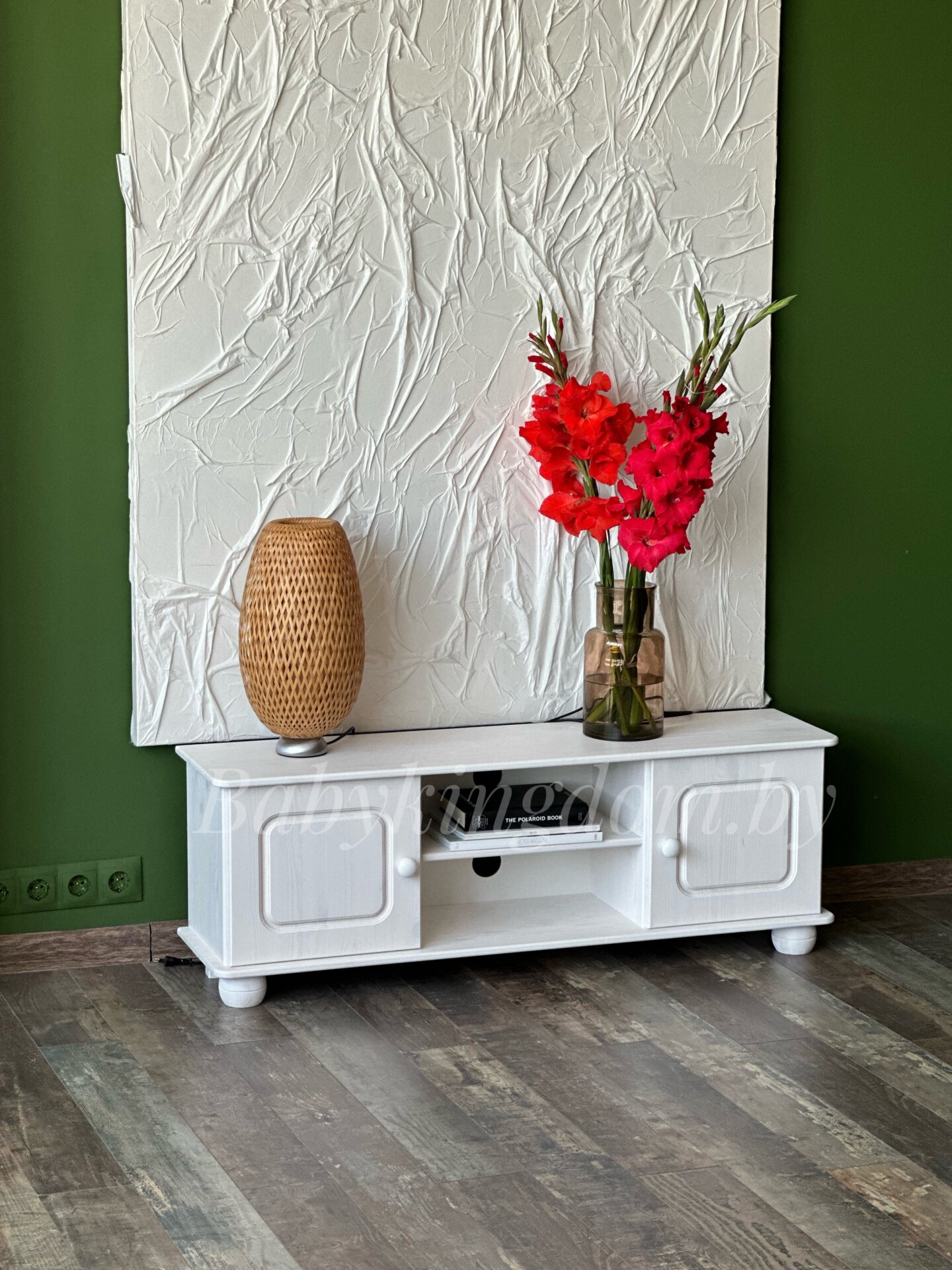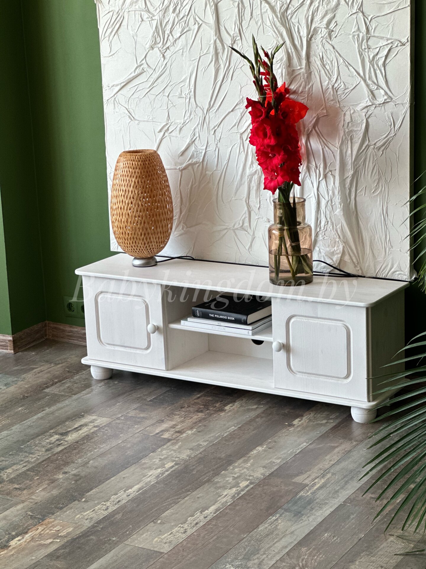 Тумба под ТВ из массива «Хаба» (белый воск)