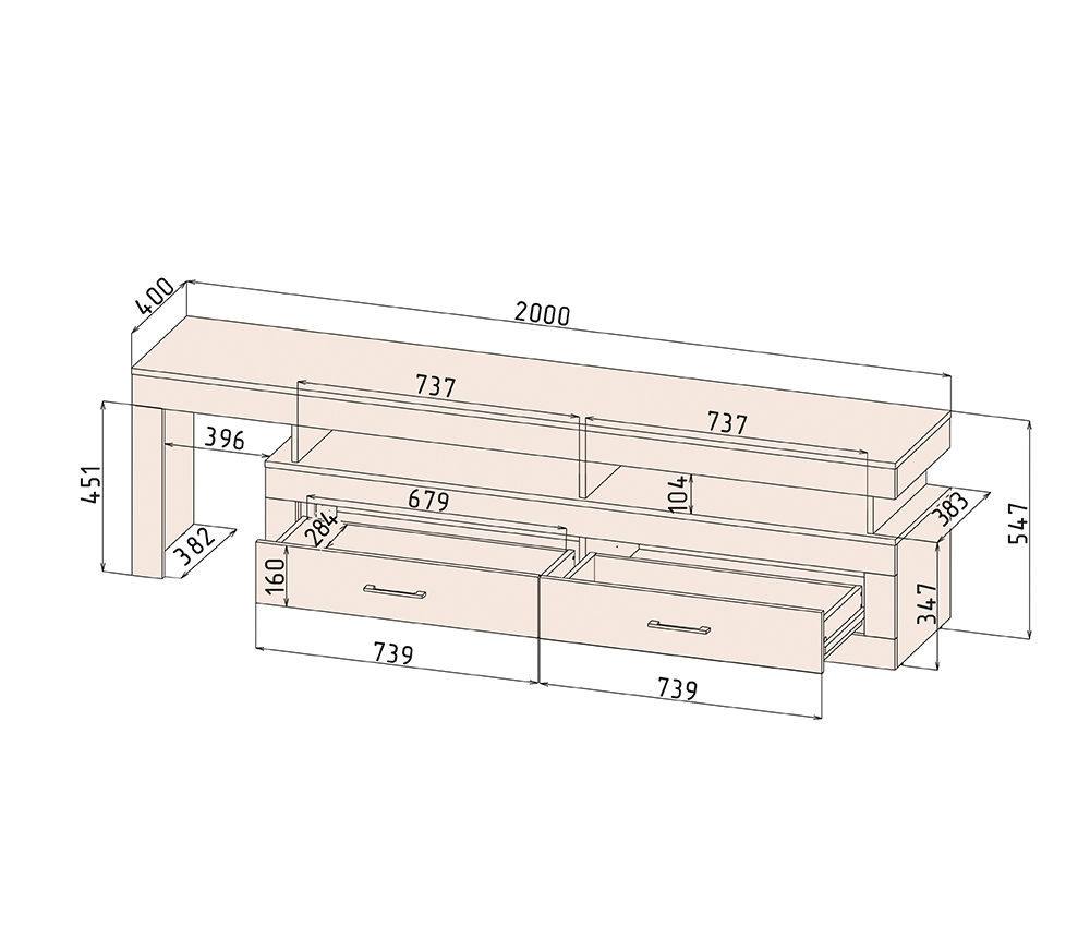 Размер (ШхВхГ): 139х90х38 см. Материал: МДФ покрытый плёнкой, ЛДСП.
