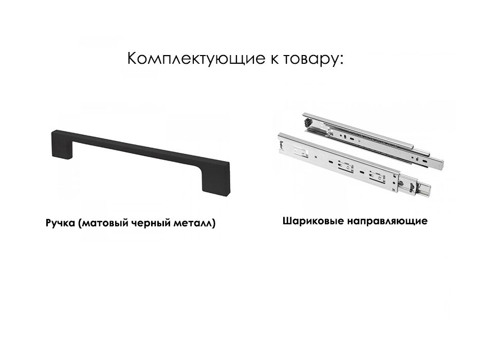 Фурнитура: ручка металлическая черная матовая, шариковые направляющие, опора мебельная.
