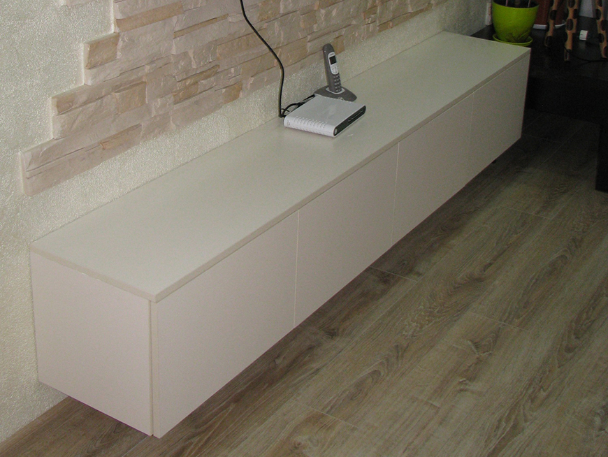 Навесная тумбочка под телевизор представляет собой вместительную конструкцию, выполненную в современном стиле. Материалом изготовления служит ЛДСП отличного качества, позволяющий модели сохранить свой превосходный внешний вид даже при каждодневной эксплуатации.