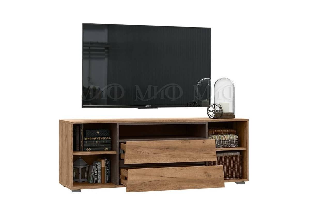 Тумба под телевизор «Прага» с фрезеровкой (дуб каньон - софт грей)