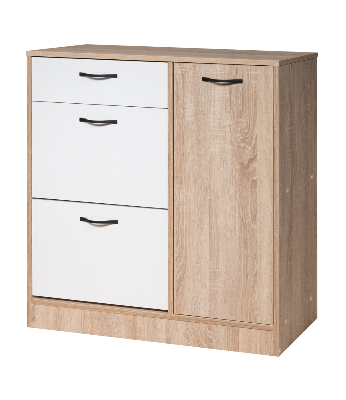 Тумба для обуви "Порто-6" - многофункциональный элемент прихожей - определит каждой вещи свое место. Тумба оборудована ящиком для хранения мелочей, двумя обувницами за откидными дверями, которые позволят разместить не менее 8 пар обуви, а за закрытой распашной дверью можно разместить сапоги либо другие габаритные вещи.