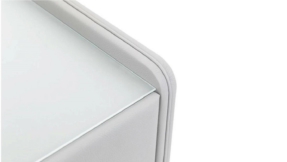 - Корпус может быть выполнен в однотонной ткани, а фасады — как в однотонной, так и в ткани с рисунком, что открывает широкие возможности для персонализации интерьера. Стеклянная столешница добавляет изысканности и защищает поверхность от повреждений.