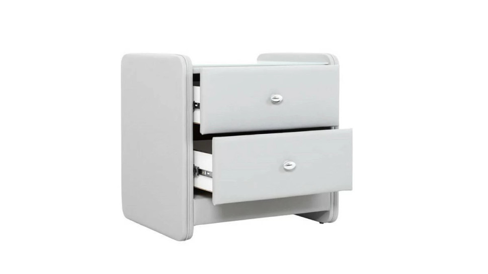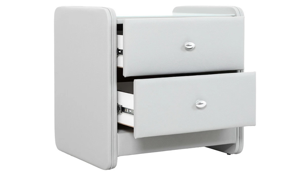 - Модель оснащена двумя выдвижными ящиками, которые позволяют хранить книги, аксессуары или любые мелочи, необходимые перед сном. По желанию тумба может быть дополнительно оборудована системой направляющих, что обеспечит плавное и лёгкое открытие ящиков.