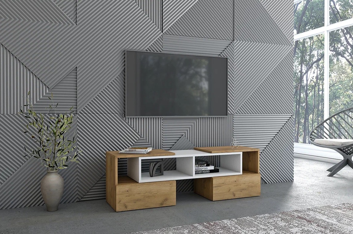 Раздвижная тумба под ТВ - функциональный и стильный предмет интерьера, обеспечивающий оптимальное расположение телеаппаратуры, дополнительной техники и аксессуаров.