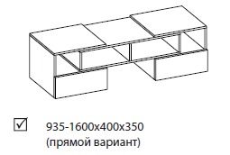 Габариты, мм: 935-1600х400х350 (прямой вариант), 900-1100х400х900-1100 (угловой вариант)