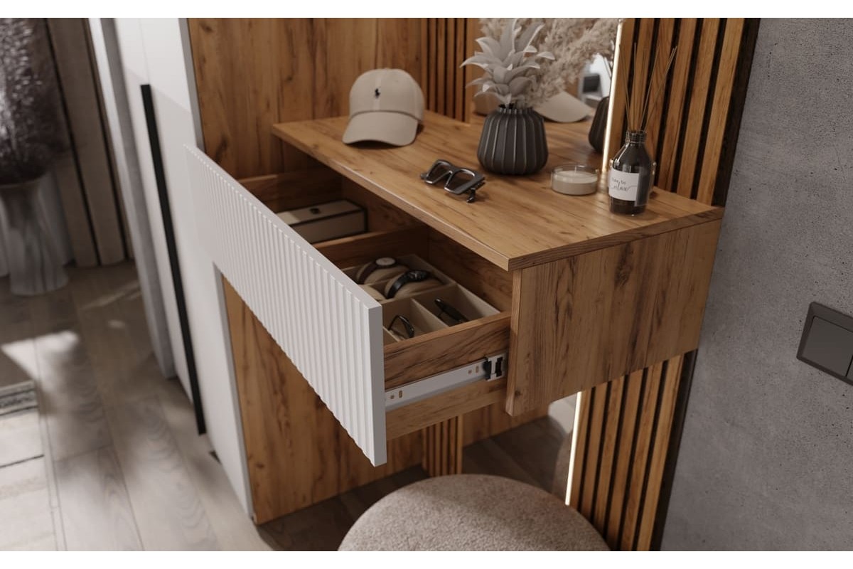 Тумба с зеркалом «Марвэл» в прихожую (Браш Вайт - Дуб Крафт Золотой)