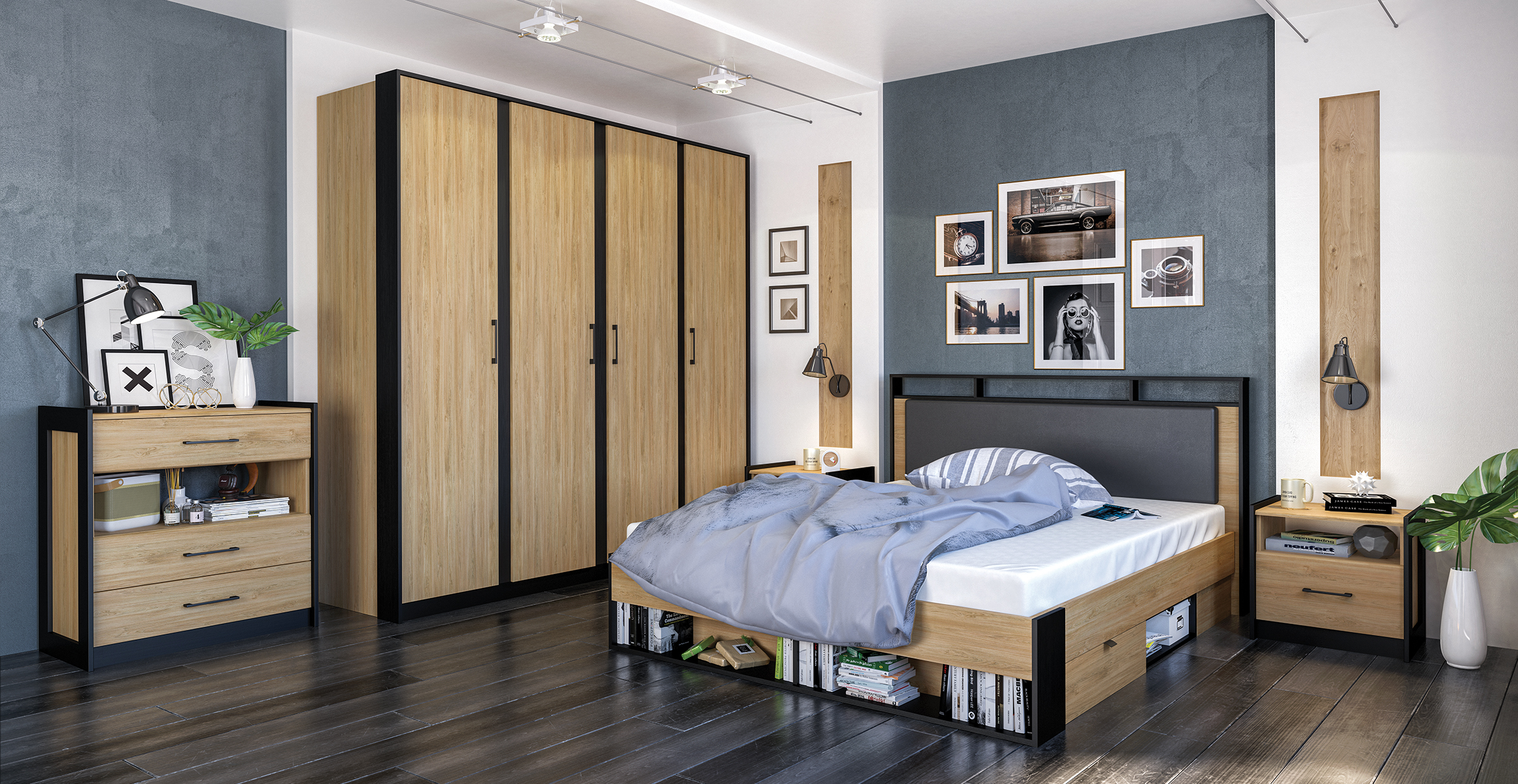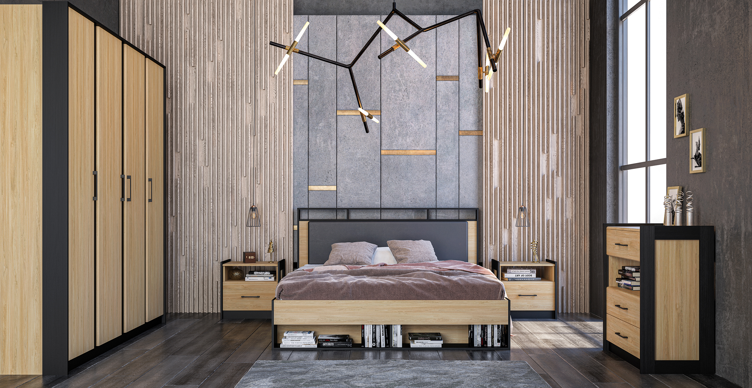 Сочетание двух разных текстур: гладкого матового МДФ и натурального дерева.