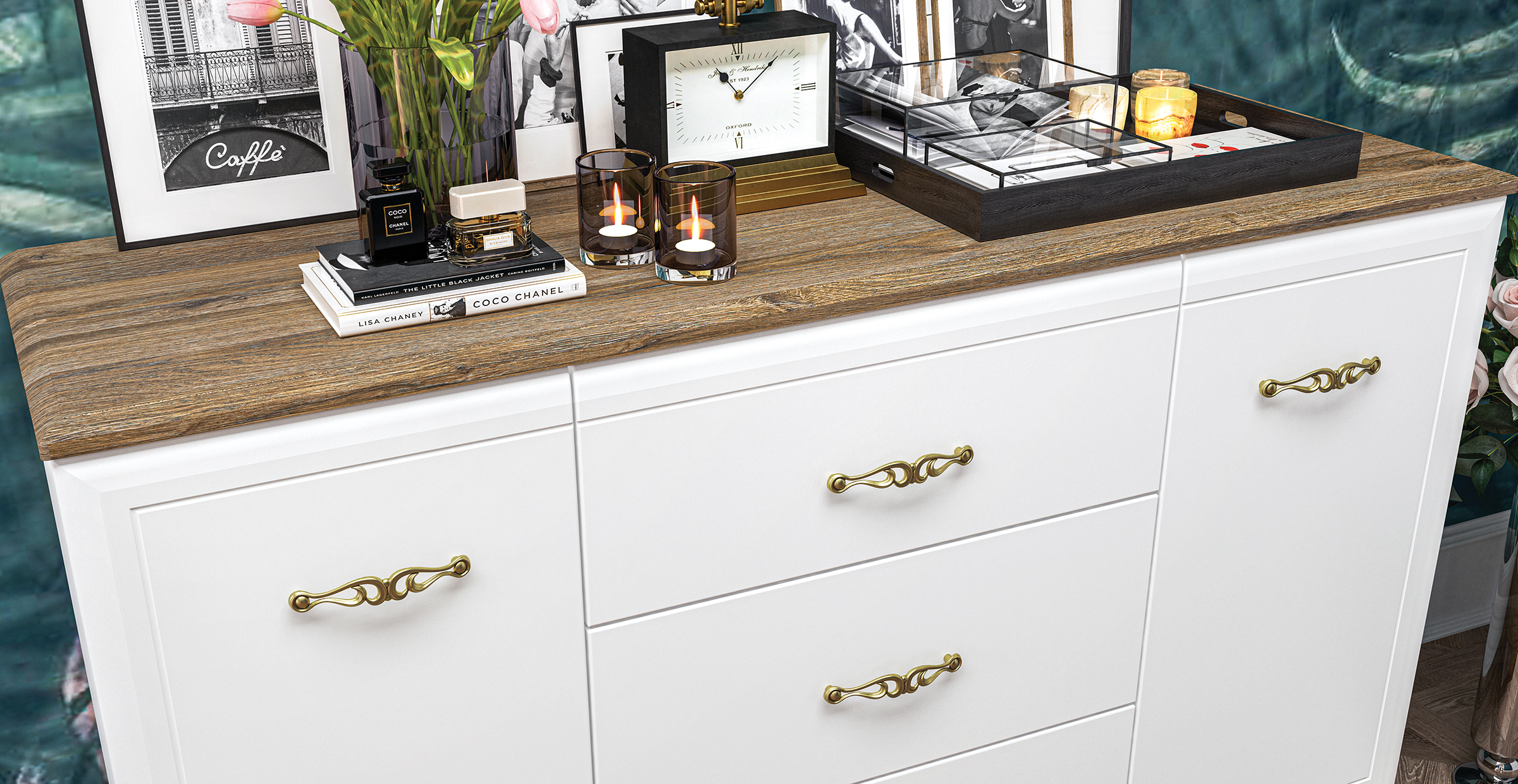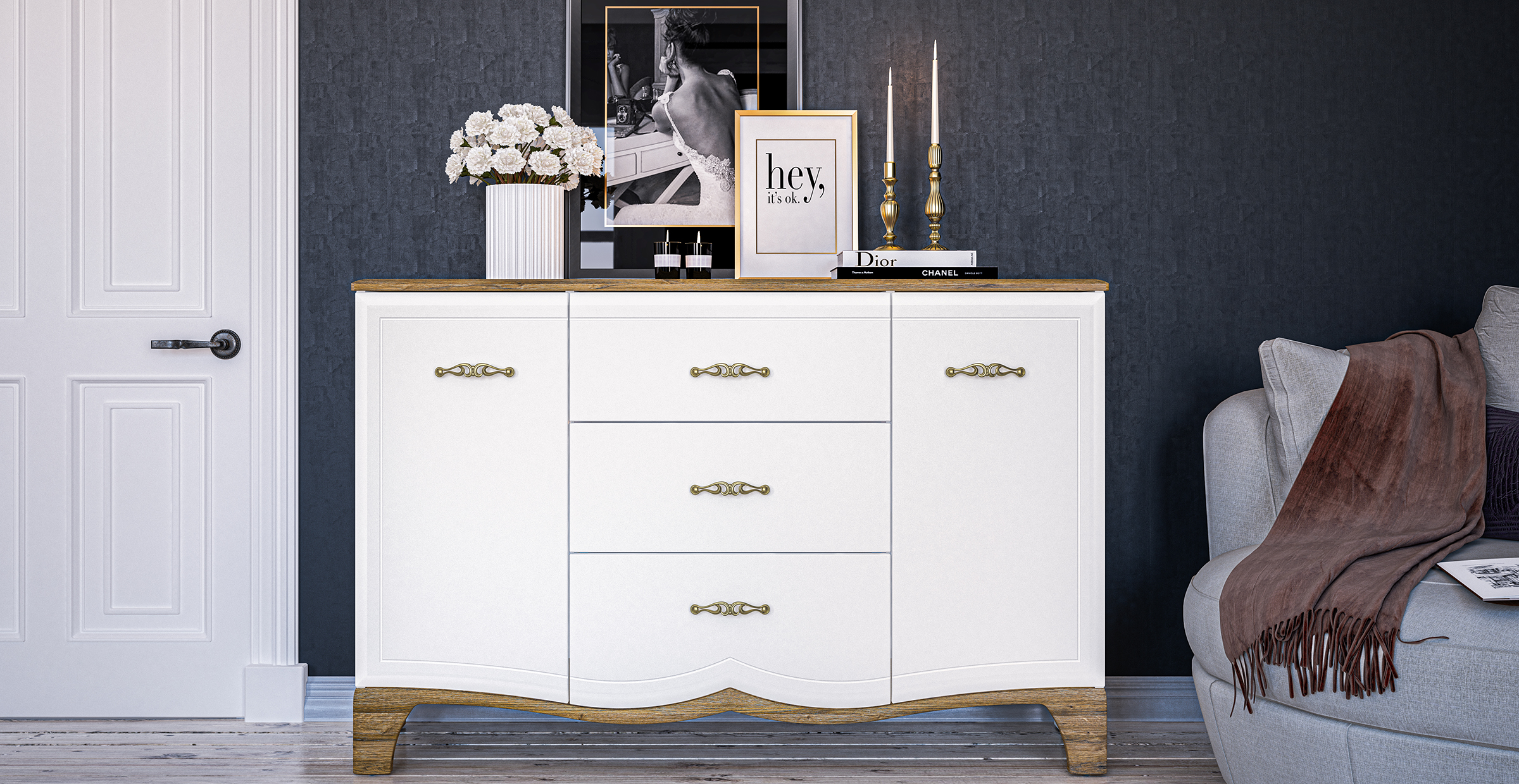 Цвет фасада: белый матовый, дуб прованс.