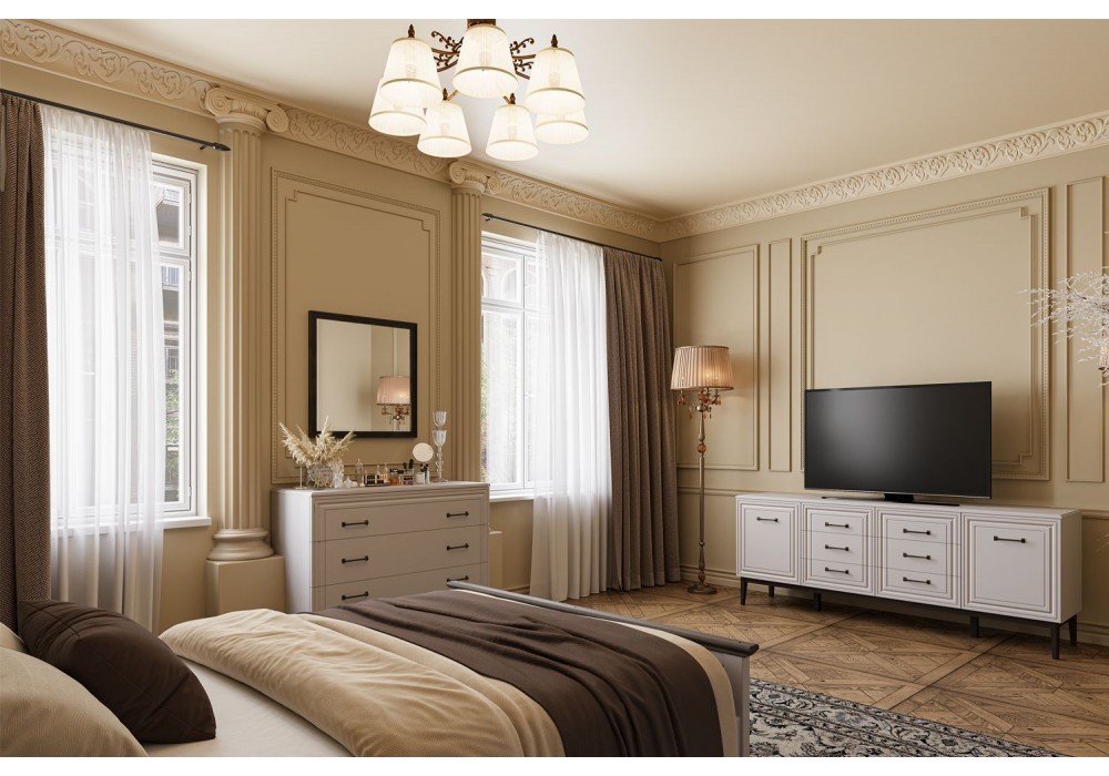 Тумба под телевизор «Фарго» (Персидский жемчуг/Лак Льняной) фабрика Браво Мебель
