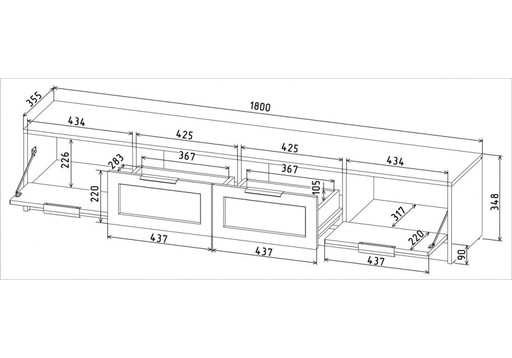 Благодаря двум откидным дверцам и двум ящикам, вы сможете удобно организовать пространство и хранить все необходимые вещи под рукой. Шариковые направляющие обеспечивают плавное открытие и закрытие, что делает использование тумбы максимально комфортным