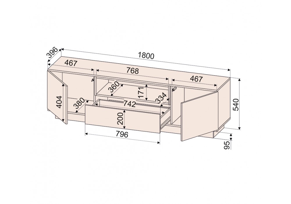 Размер (ШхВхГ): 138х94х38 см. Материал: МДФ покрытый плёнкой, ЛДСП.