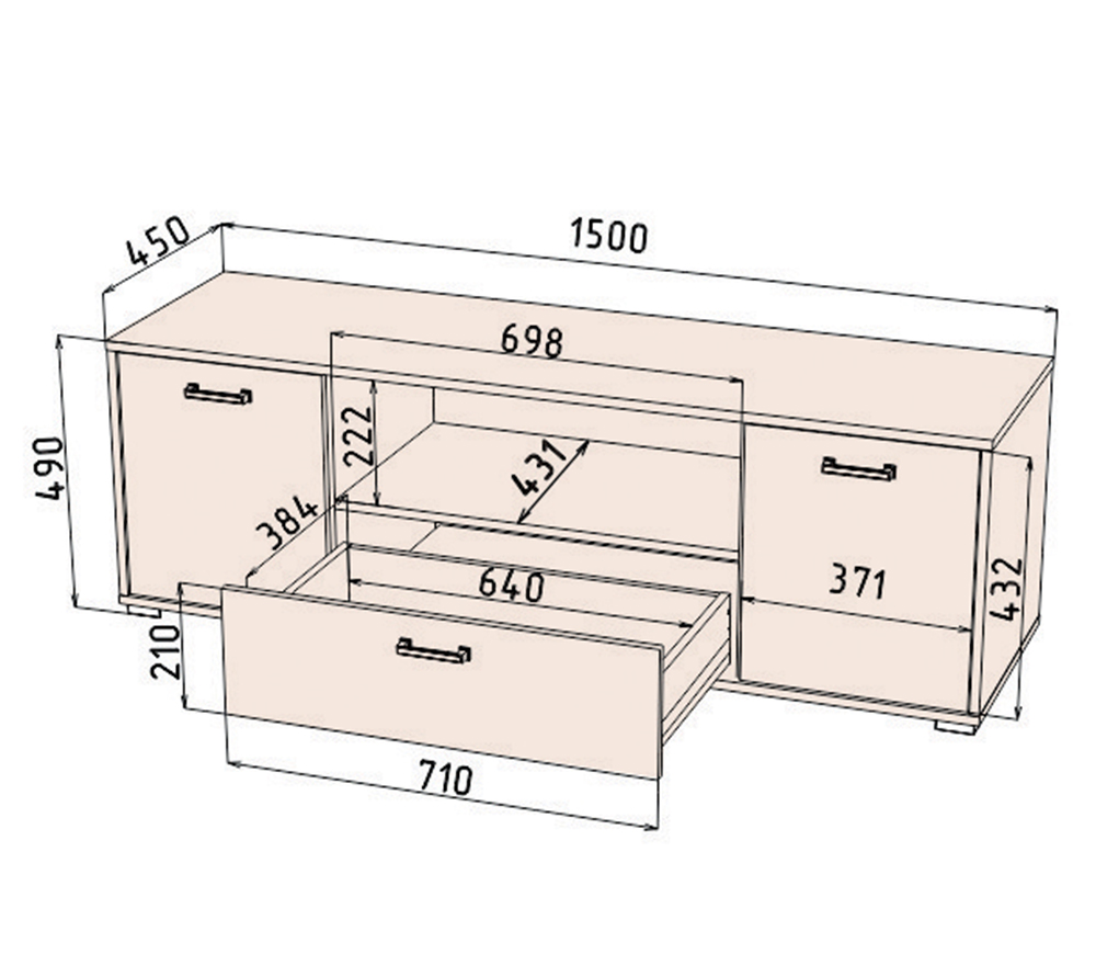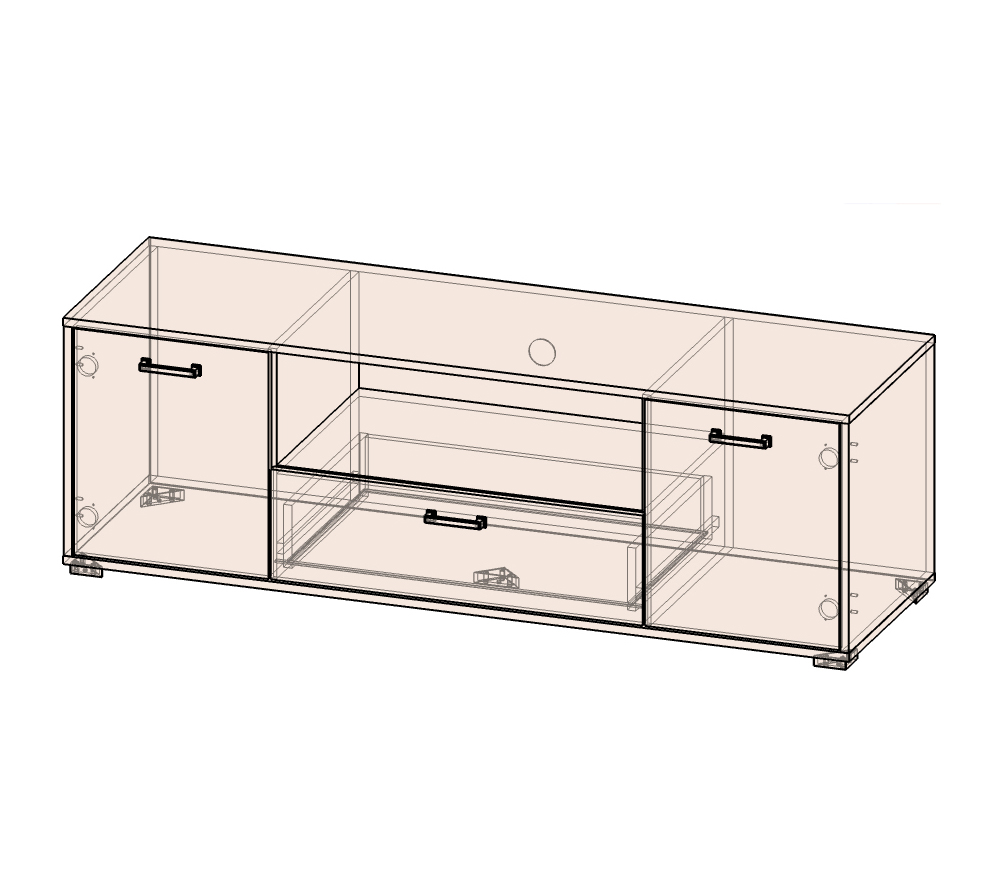 Тумба под телевизор с выдвижным ящиком и полками.