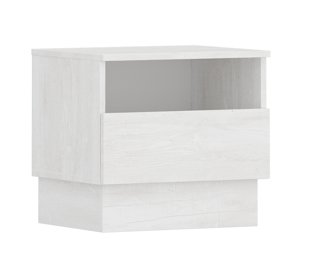 В набор входит комод с четырьмя выдвижными ящиками и тумба.