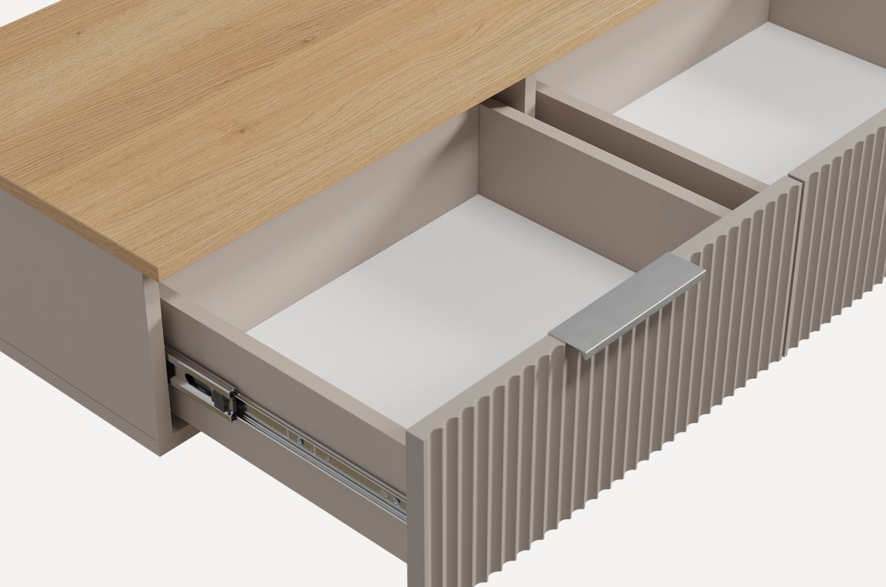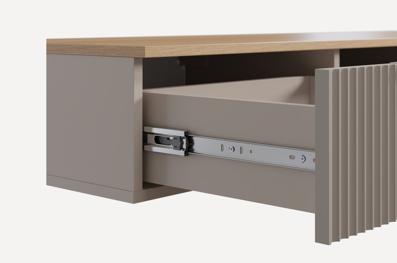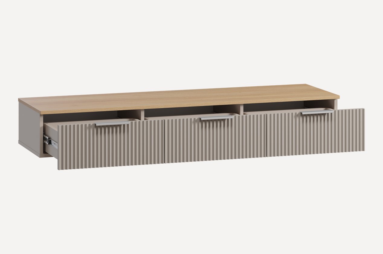 Парящая тумба под ТВ со шкафчиками