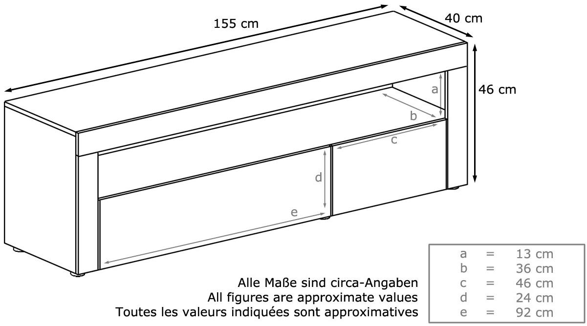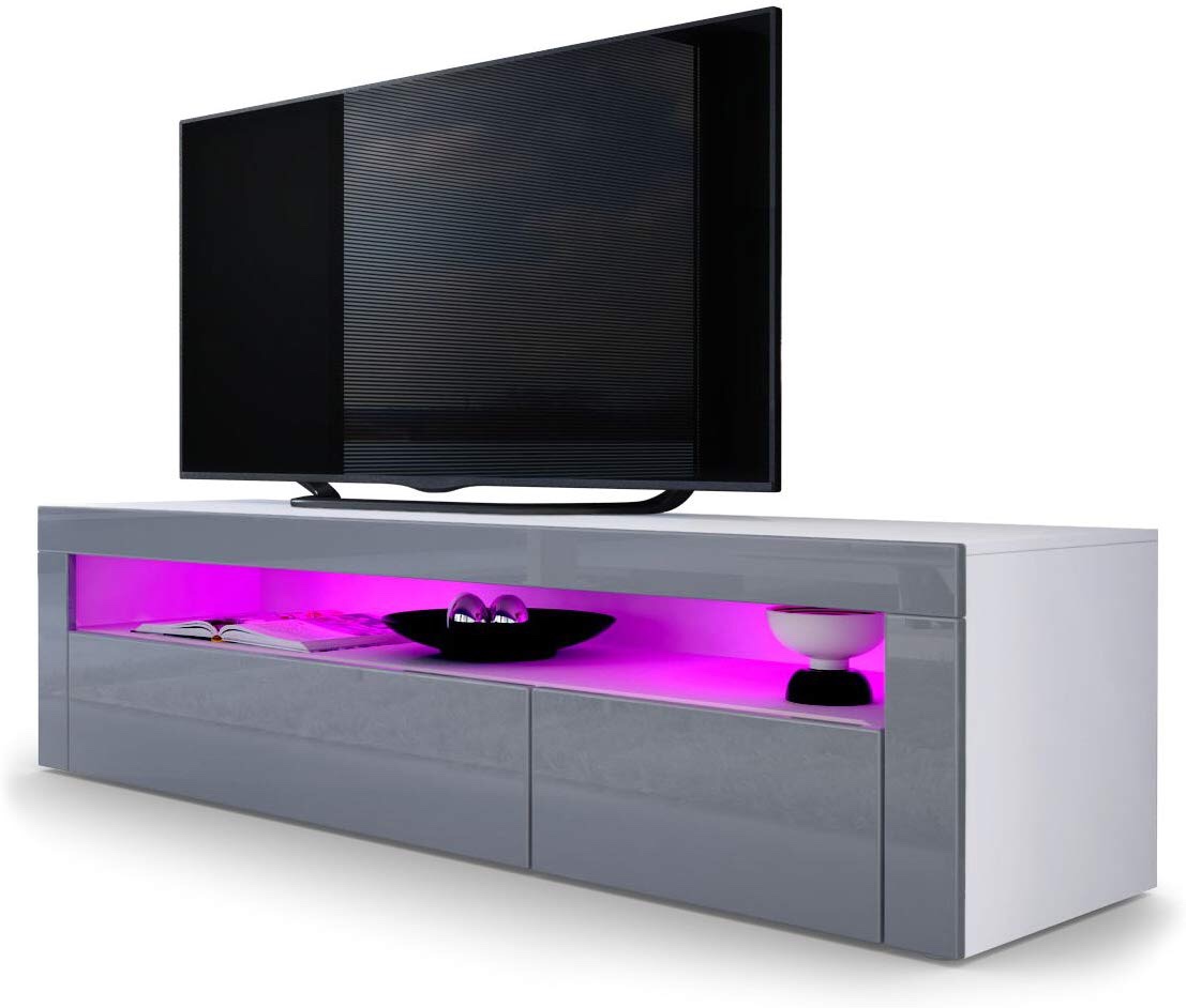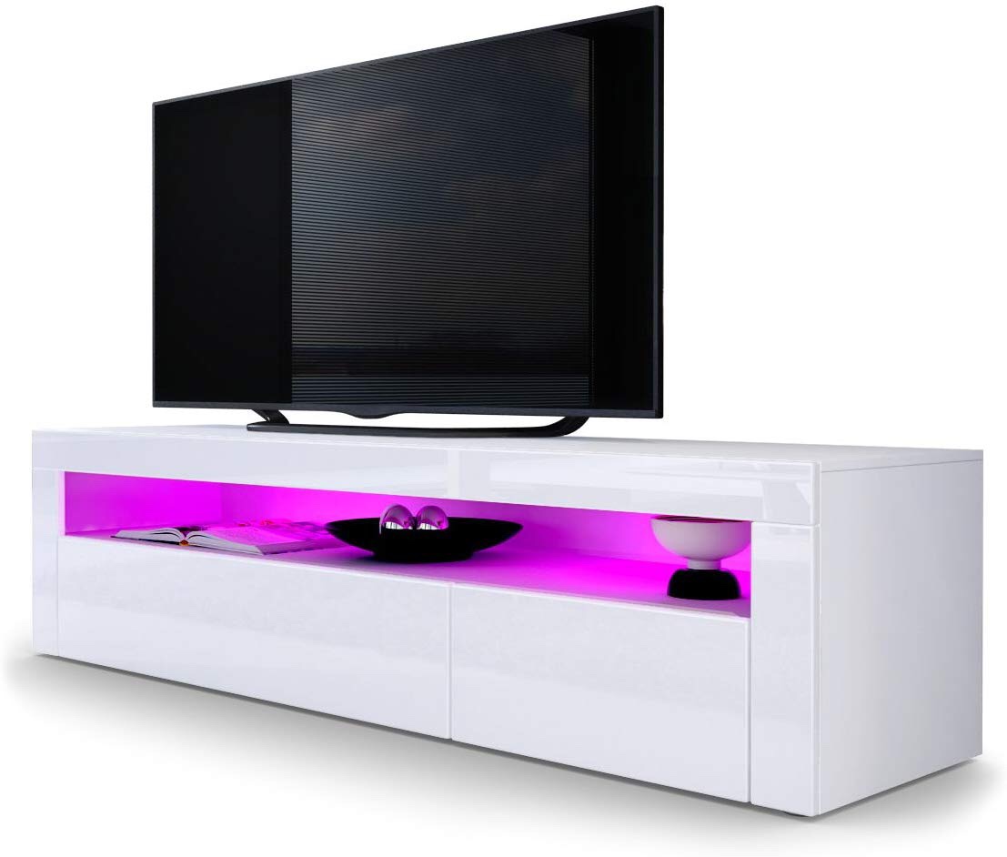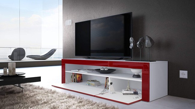 Удобная полутораметровая тумба для телевизора с узкой открытой нишей, оснащенной светодиодной подсветкой. Конструкция имеет две откидные створки, за которыми скрываются просторные ящики для книг, дисков, журналов, посуды и других принадлежностей.