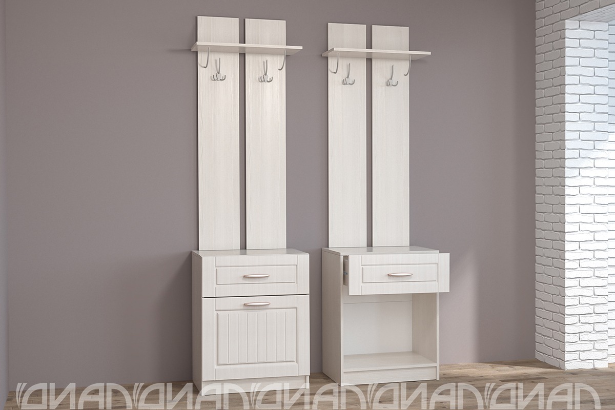 Вешалка с тумбой под обувь представляет собой удобное и компактное решение для вашей прихожей. Ее прямые линии подчеркивают классический стиль и позволяют легко вписать ее в различные интерьеры. Над отделом для обуви расположен выдвигающийся ящик, идеально подходящий для хранения различных мелочей и аксессуаров.