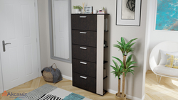 Тумба для обуви с полками и ящиком выполнена из ЛДСП в цвете темного венге.