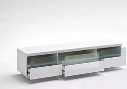 Тумба под ТВ в белом цвете с закругленными углами. Без ручек.