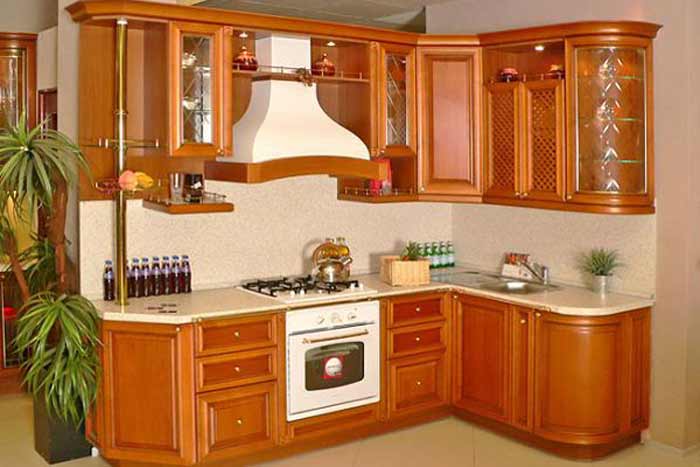 По условиям дальнейшей эксплуатации, в большинстве случаев производители кухонь используют массив дерева только для рамки фасада, а центральную часть фасада выполняют из МДФ, покрытого шпоном. Это связано с тем, что массив дерева- это «живой» материал, который «дышит», т. е. дерево подвержено влиянию климатических условий помещения (температуры, влажности итд).