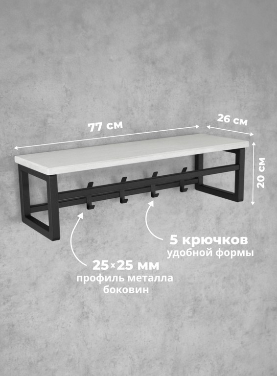 Металлическая вешалка с полкой из массива дуба для прихожей — это отличный выбор для тех, кто ценит практичность и стильный дизайн. Настенная вешалка имеет 5 крючков и полку из массива дуба.