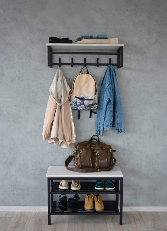 Вешалка c полкой в прихожую «GA» (беленый, черный)