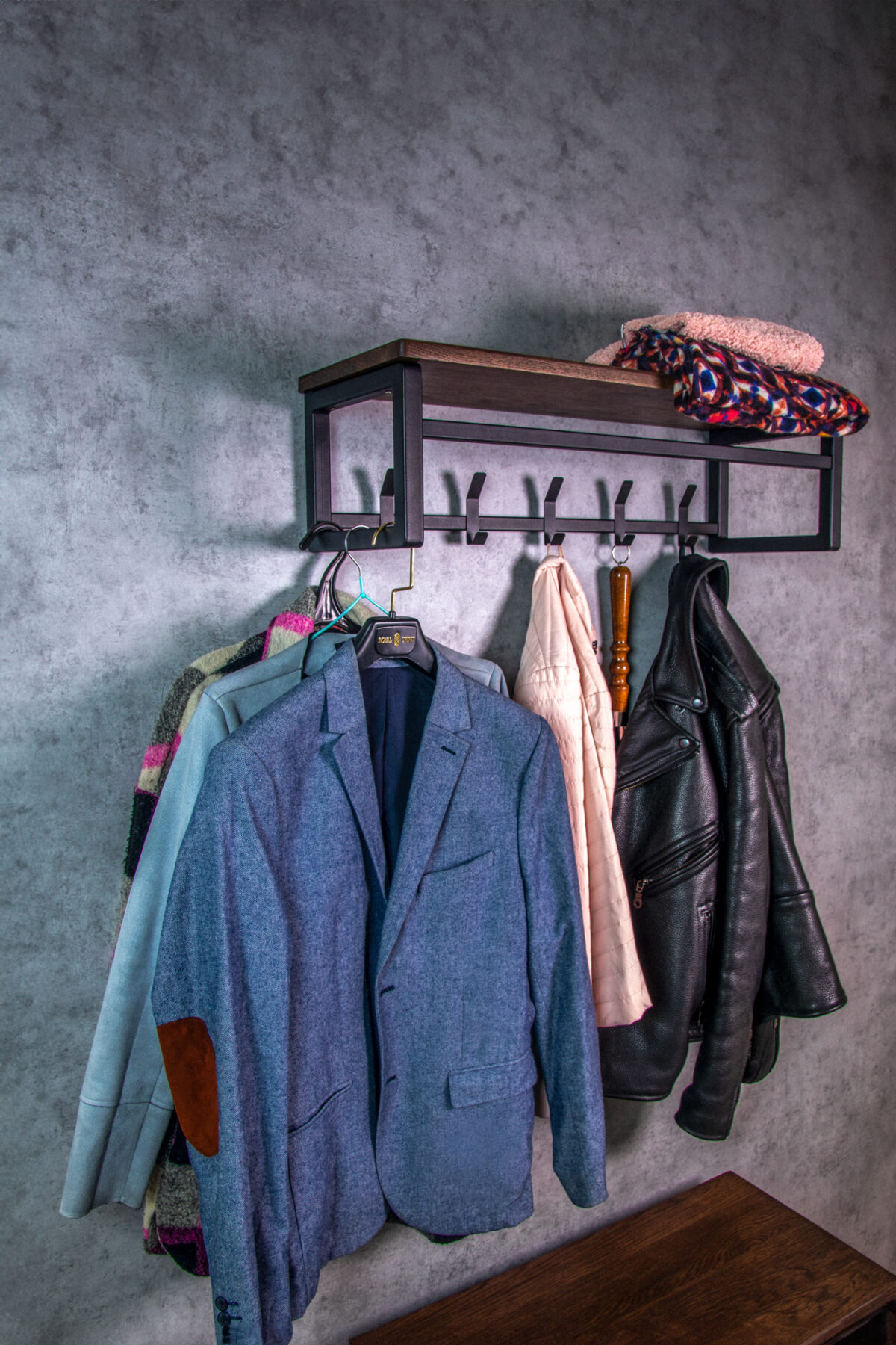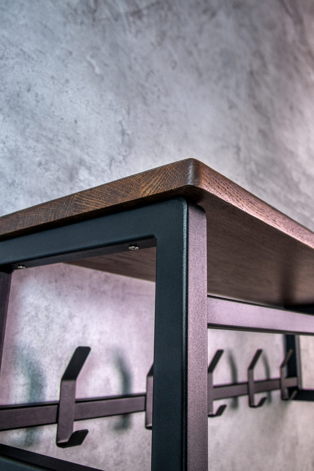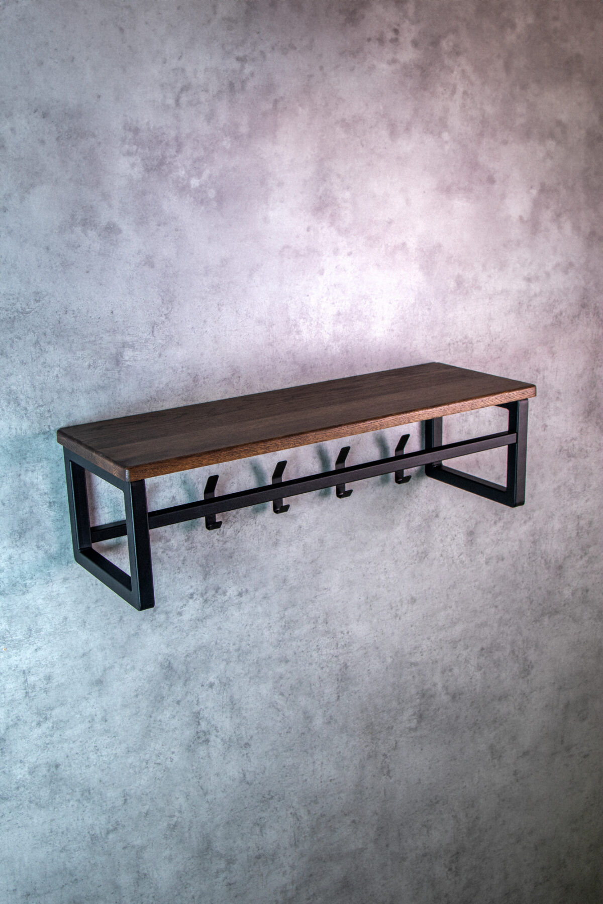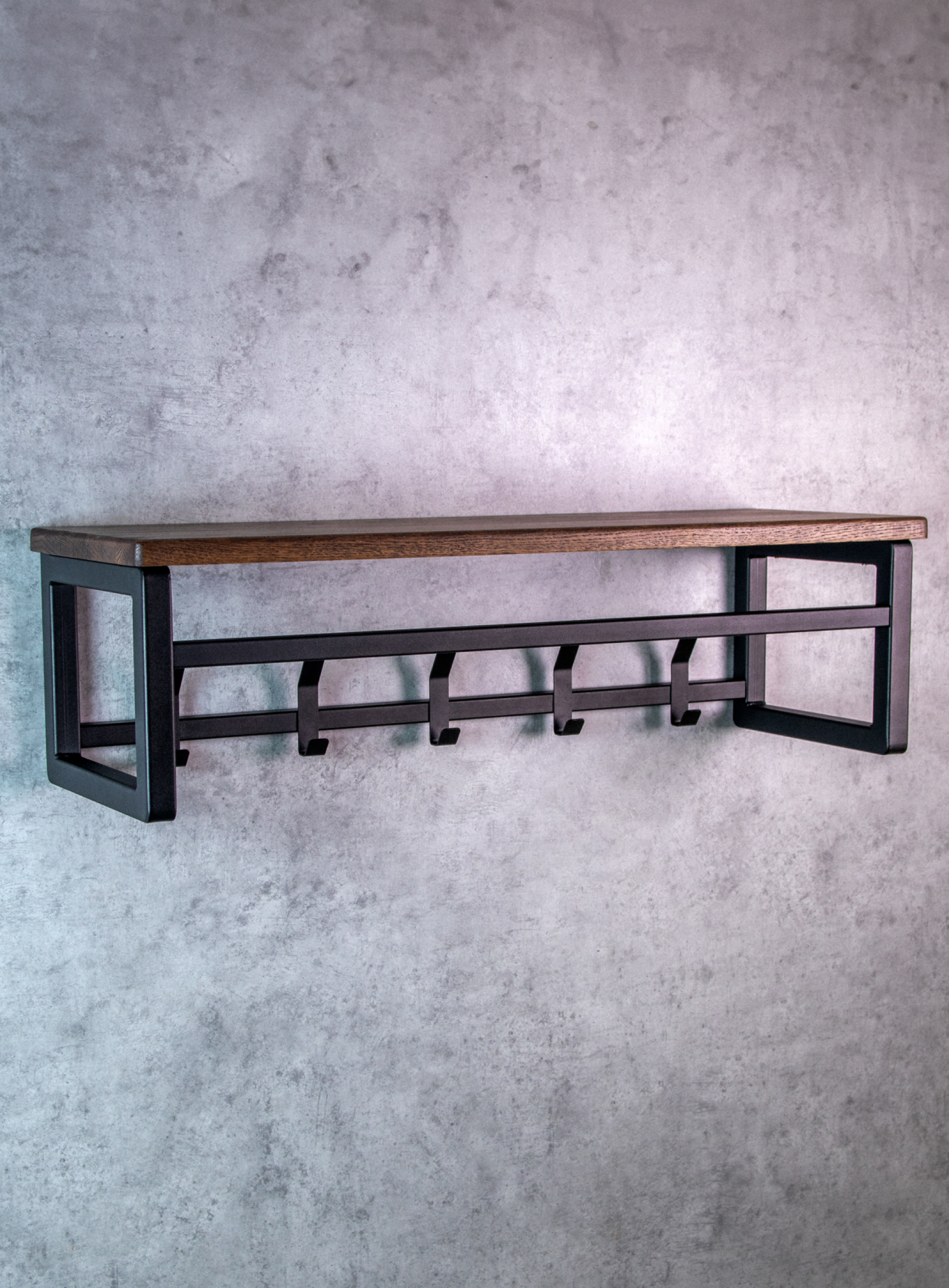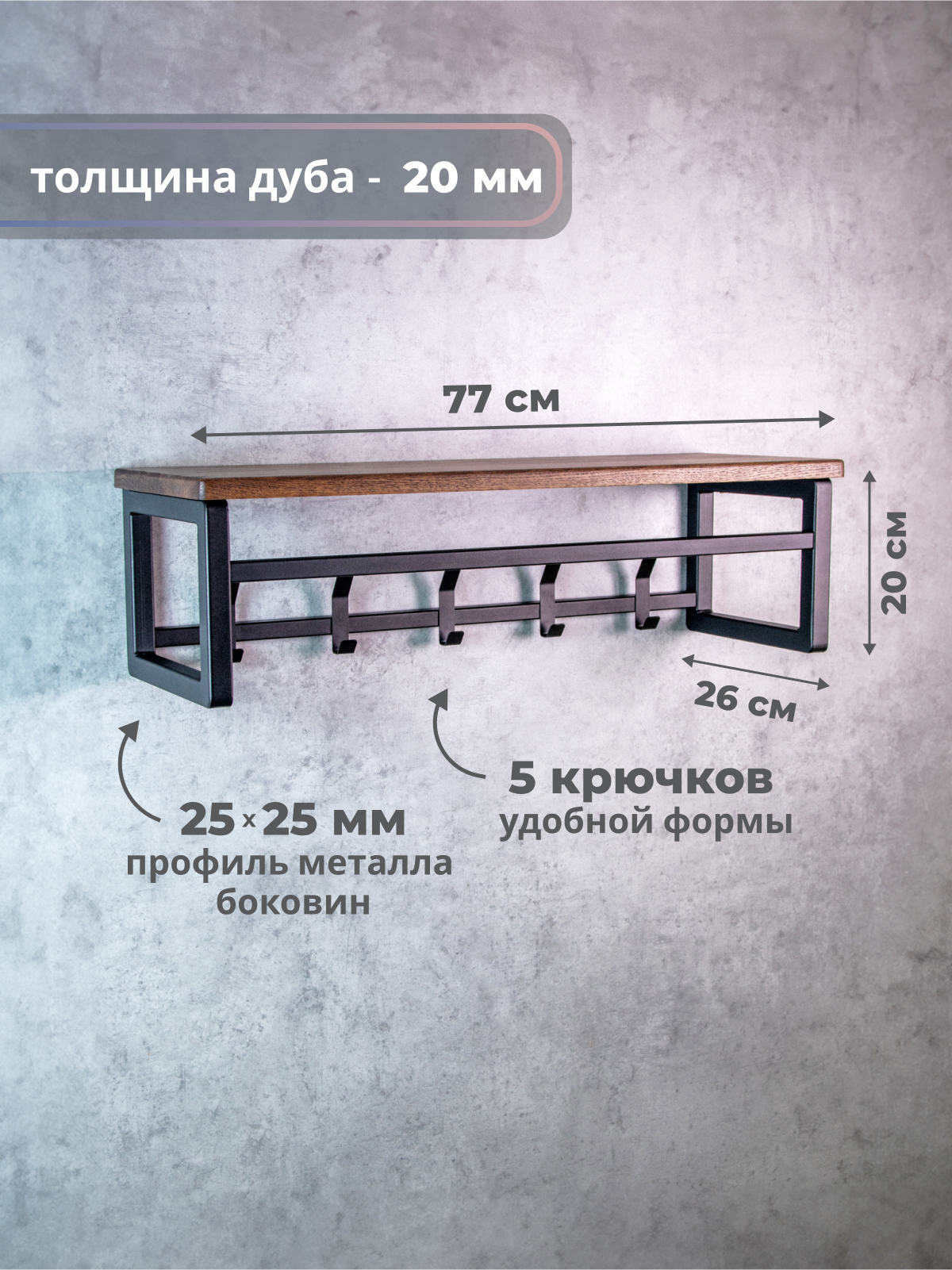 Металлическая вешалка с полкой из массива дуба для прихожей — это отличный выбор для тех, кто ценит практичность и стильный дизайн. Настенная вешалка имеет 5 крючков и полку из массива дуба.