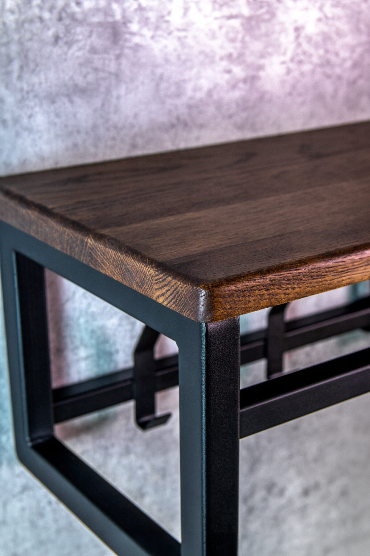 Большой приставной журнальный столик в стиле лофт. Изготовлен из массива дуба и высококачественного метала.
