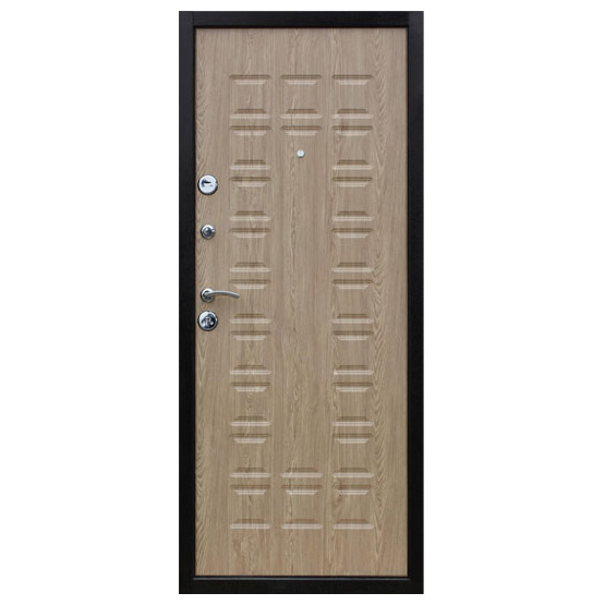 Данная модель входной металлической двери представляет собой сочетание двух материалов. С внешней стороны сталь с порошково-полимерным покрытием, а с внутренней МДФ панель. С обоих сторон выбор цвета зависит от ваших предпочтений.