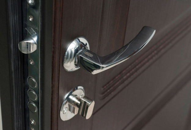 Дверь входная ФорпостБел «Ф-45» белорусского производства отличается высокой надежностью за счет наличия двух замков и двух скрытых петель с внешней стороны. Панели изготовлены из плит МДФ приятного темно-коричневого цвета с древесной текстурой и резными геометричными элементами, выполненными при помощи фигурной фрезеровки.