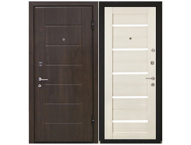 Надежная входная дверь, отличающаяся современным дизайном, оснащена двумя замками. Панель изготовлена из высококачественного экошпона с фактурой древесных пород. Полотно устойчиво к солнечным лучам, механическому и химическому воздействию.