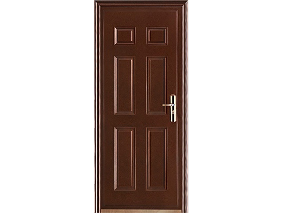 Дверь с полимерным покрытием, текстурой древесного цвета.
