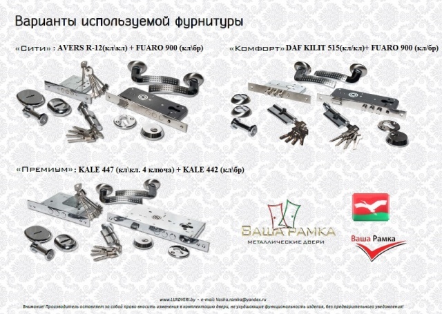 Фурнитура серии: сити, комфорт, премиум - доп. стоимость;