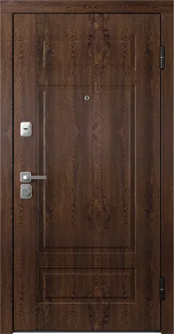 Конструкция двери: каркасно-сварная. Для данной двери используется металлическая коробка (ширина профиля — 89 мм) и 2 контура уплотнения. За прочность и надежность полотна (толщина — от 82 до 92 мм) отвечают ребра жесткости.