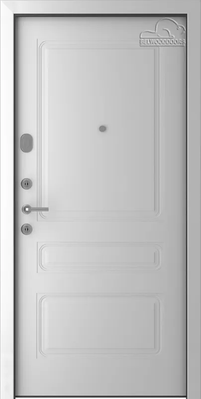 Внутренняя сторона:фрезерованная панель МДФ от 6 до 16 мм в стиле одной из межкомнатных дверей Belwooddoors с покрытием эмаль: