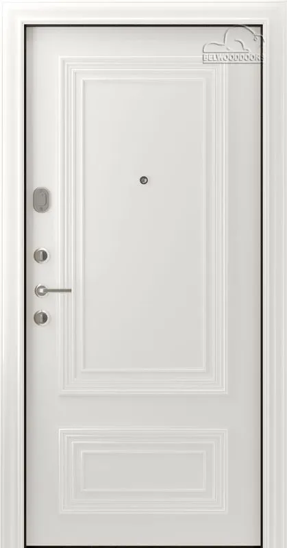 Внутренняя сторона:фрезерованная панель МДФ от 6 до 16 мм в стиле одной из межкомнатных дверей Belwooddoors с покрытием эмаль: