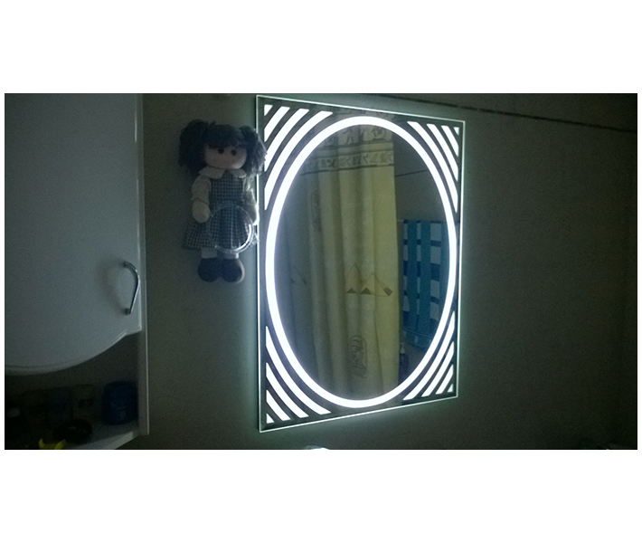 Прямоугольное зеркало в ванную комнату украшает оригинальная подсветка, которая пригодится в темное время суток. Полотно изготовлено из прочного материала 4 мм. На выбор зеркало может украсить фацет, пескоструй или фотопечать.