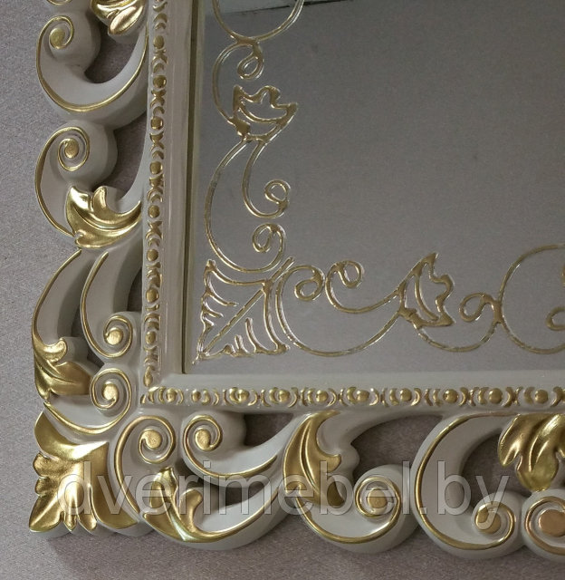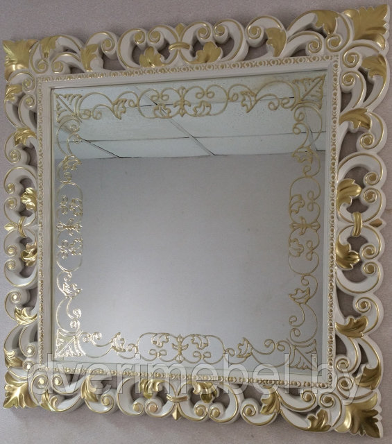 код 91579Узорчатый багет с патиной и/или позолотой. Зеркальное полотно с пескоструйным рисунком.