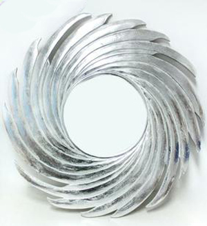 Круглое зеркало с золотистой рамой, которая изогнута в виде спирали. Благородная патина на раме придает образу изделия таинственности и дороговизны. Зеркало подойдет для спальни или ванной комнаты.