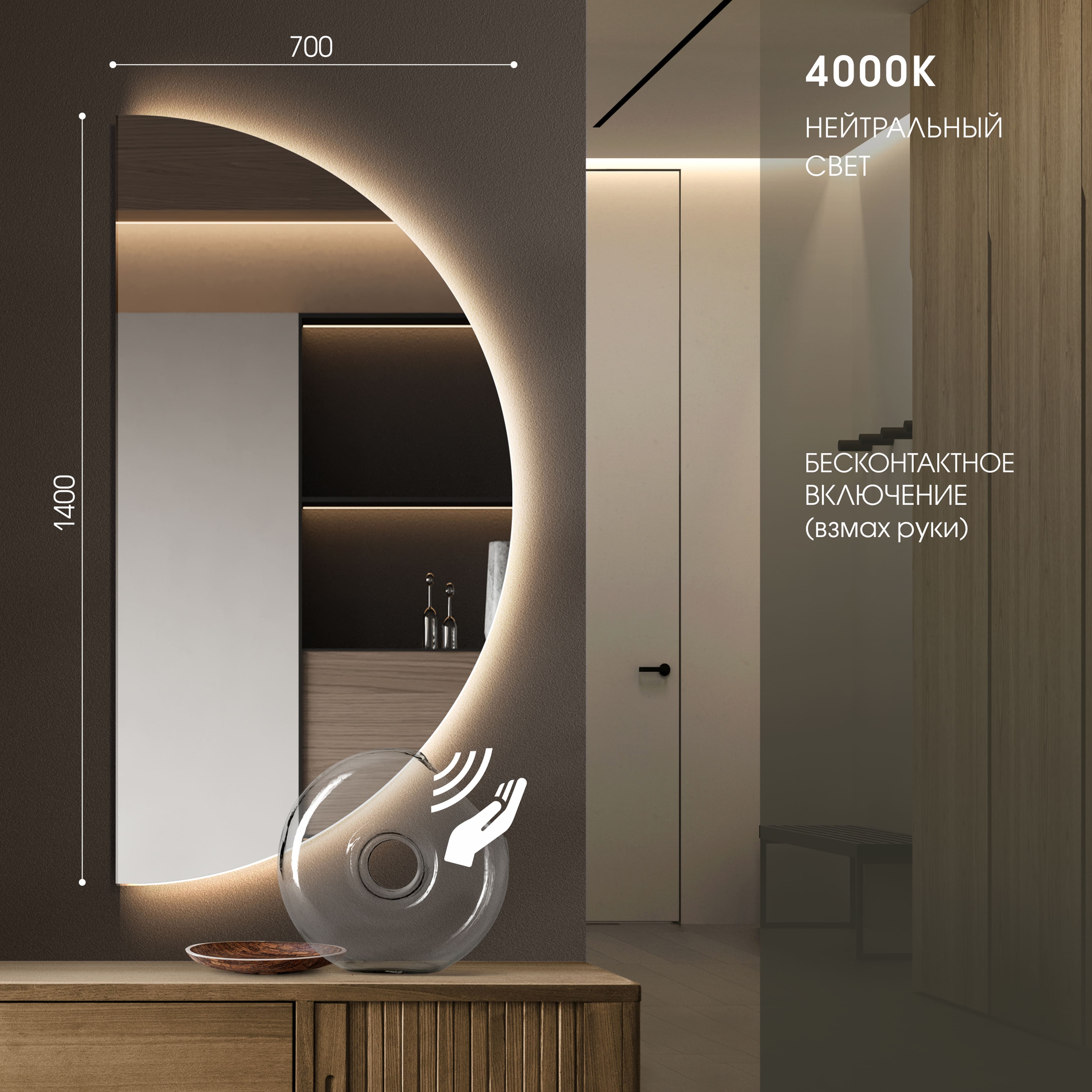 Зеркало с подсветкой, торцевой датчик, 1400*700, ЗП-165